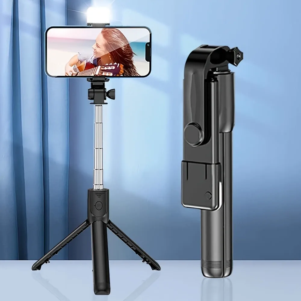 R1s Bluetooth Selfie Sticks with Remote and Selfie Light, 3-in-1 Multifunctional Selfie Stick Tripod Stand Compatible with iPhone/OnePlus/Samsung/Realme & All Smartphones/Go Pro (Black)